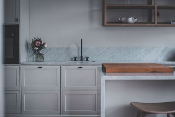 Photographed during my time at A&O Marmor och Granit AB, this project highlights the airy, open layout of the kitchen, creating a sophisticated and clean aesthetic that feels both inviting and luxurious. The images were captured for use across the company’s social media, website, and other marketing channels, showcasing the exquisite pairing of traditional design with high-end materials.